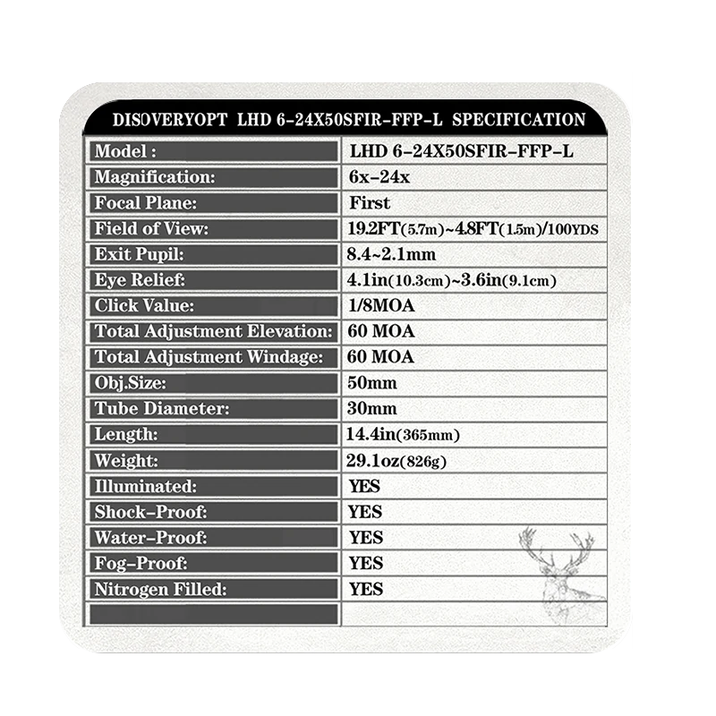 - IR (Illuminated Reticle): Illuminated reticle, the reticle can emit light, facilitating use in low-light environments.